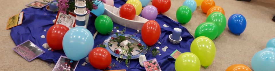 Da unser Anreisetag auch der Michaelistag war, beschäftigen wir uns eingangs mit dem Thema „Engel“, auch anhand von Texten von Anselm Grün. Unser Hauptthema „Angst“ wurde in vielfacher Weise bearbeitet. Sehr originell war, dass wir unsere, auf kleine Zettel geschriebenen Ängste, als Los zusammengerollt in Luftballone steckten, diese aufbliesen, verknoteten und in die Luft warfen (siehe Thema).